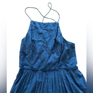 Lucky Brand Halter dress in blue-eyelet details, tea length size L