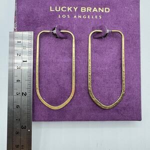Lucky Brand Hammered Long Gold Tone Brutalist Hoop Earrings New In Box