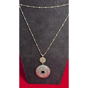 Lucky Brand Hanging Two Tone Decorated Disc Long Necklace Adj 30”-32”