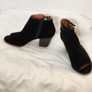Lucky Brand Hartlee Brindle Heels Suede Lace Tie Ankle Boots Bootie Bohemian