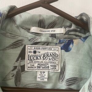 Lucky Brand Hawaiian S/S Shirt Blue Floral Maui Tencel Club Collar Classic Fit S