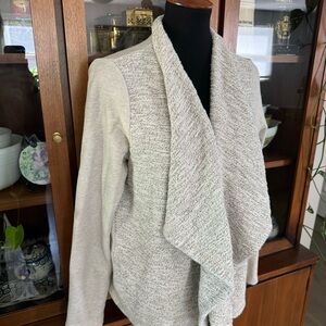 Lucky Brand Heather Oatmeal Drape Cardigan size Large. Lightly used, with no damage, stains, or holes. Medium weight knit material, no closure but a drapey front. Has pockets!