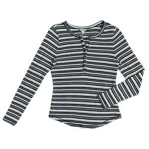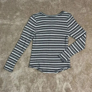 Lucky Brand Henley Long Sleeve Top Womens XL Striped Thermal Textured Knit