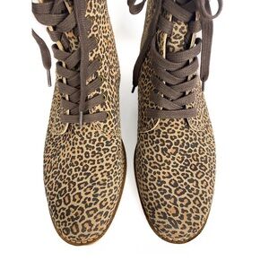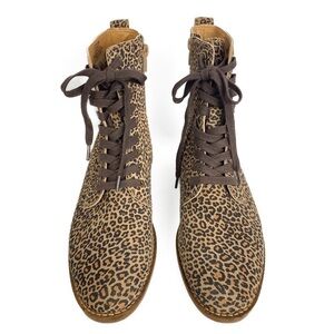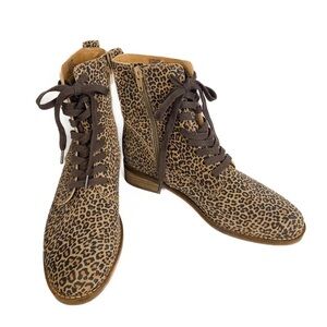 Lucky Brand Hestwan Leopard Cheetah Lace Up Combat Boot, Tan - Size 6.5