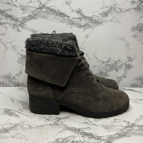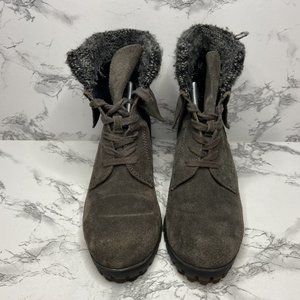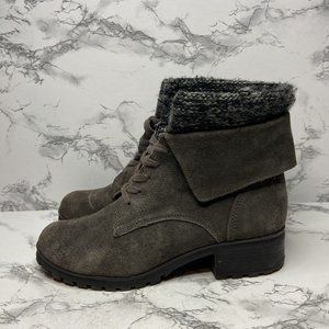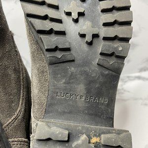 Lucky Brand Heylie Combat Boot Womens 7.5 Gray Suede Outdoor Lace Up Casual Shoe
