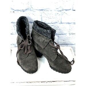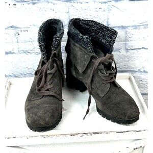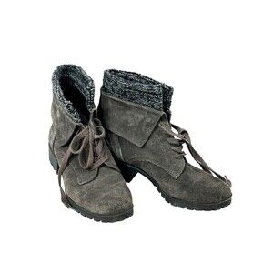 Lucky Brand Heylie Suede Lace Up Fold Over Ankle Boot Combat Boot Grey Size 7.5M