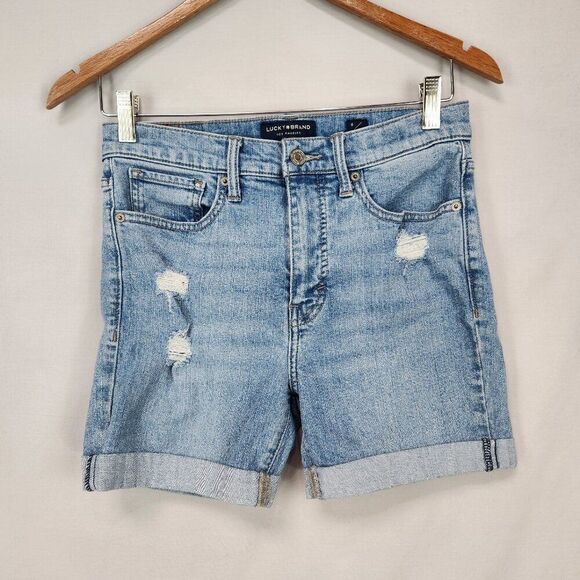 Lucky Brand High Rise Straight Zoe Womens 6/28 Denim Cutoff Jeans Blue Cuffed