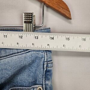 These cute shorts are in excellent condition. Very clean. Obviously they started out as ankle pants and have been cut down to shorts with a sewn in cuff. It was very nicely done. Distressed with whiskers, they make a fun pair of shorts.
