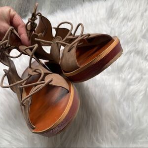 Lucky Brand Hipsta Open Toe Leather Wedge Sandals Tan Brown Size 7.5