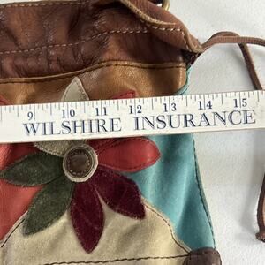 Lucky Brand Hobo Shoulder Bag Colorful Patchwork Leather Suede Flowers Vtg Boho