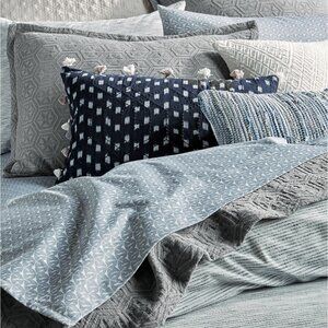 Created to make you feel at home, the Sante Fe twin sheet set has a textured gradient with geometric motifs that encourage a feeling of calm and zen on luxe cotton sateen. The peaceful dusty blue sheet set was designed to mix and match with the rest of our curated home collection.