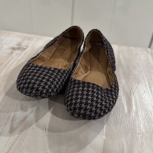 Lucky Brand Houndstooth ballet flats in grey and black. Fit truer to size.