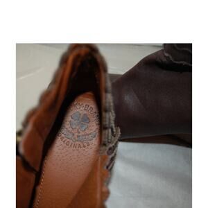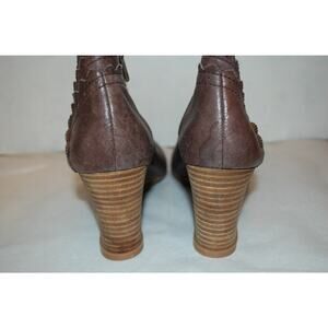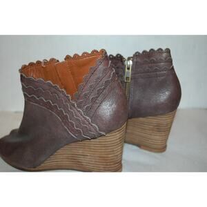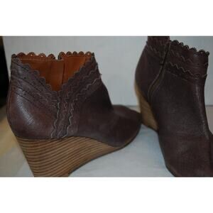 Lucky Brand IRIS Women's 7 Peep Toe Scalloped Leather Wedge Booties Boho Hippie