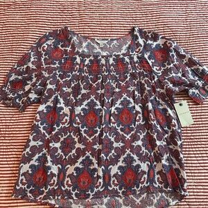 Lucky Brand Ikat Scroll design top shirt blouse size Large L New with tag