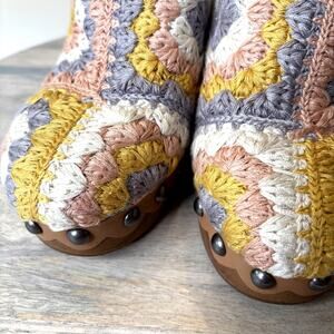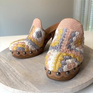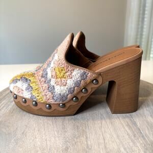 Lucky Brand Immia Crochet Block Heel Clogs Multicolor Boho Retro Studded Size 8