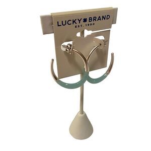 Lucky Brand Inlay Matte Silver & Sky Blue Oval Drop Earrings.