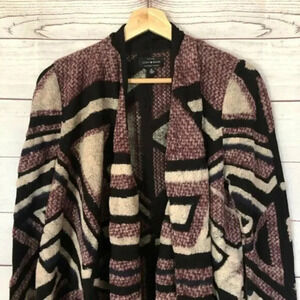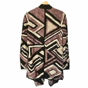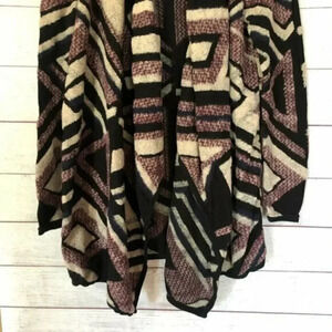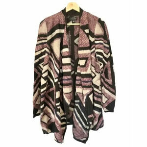 Lucky Brand Intarsia Aztec Geometric Print Waterfall Cardigan M