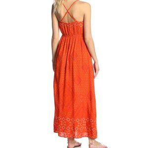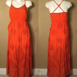 Lucky Brand Irving & Fine Orange Strappy Maxi Dress Pockets Sequin India XL