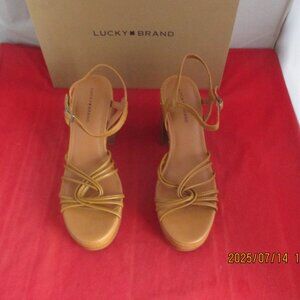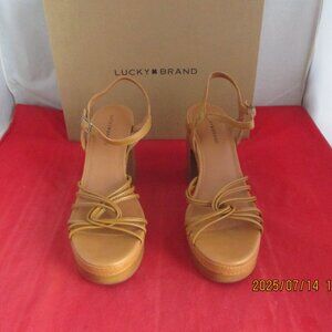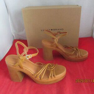 Lucky Brand Ismene Strappy Platform Dress Sandals $119 Size 9 1/2 Cognac - 1257