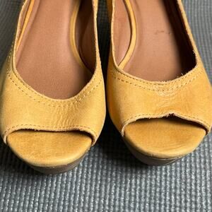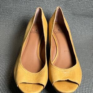 Lucky Brand Issy 2 Wedge Heels Womens 8.5M Yellow Leather Slip On Peep Toe