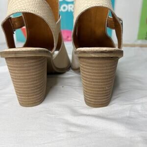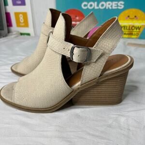 Lucky Brand Ivory Labradite Wedge Strappy Stack Sandal In Stucco Size 10 Women