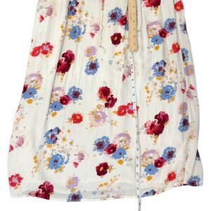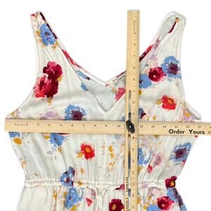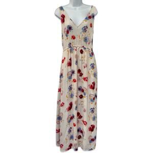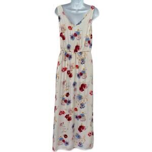 Lucky Brand Ivory Red Blue Floral Sleeveless Tie Waist V-Neck Maxi Dress size S