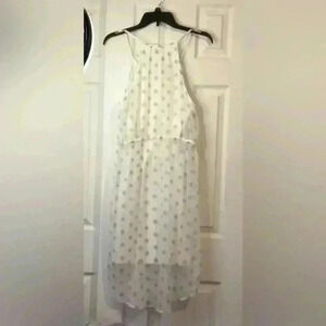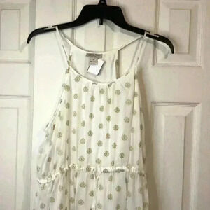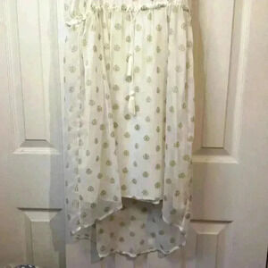 Lucky Brand Ivory and Metallic Gold Sheer High Low Dress Size Medium