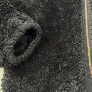 Lucky Brand Jacket Coat Black Faux Fur Rose Gold Zipper Drawstring Waist Small