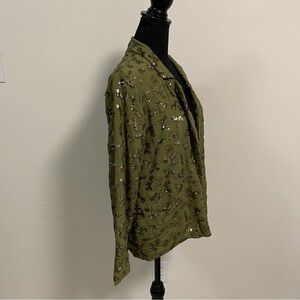 Lucky Brand Jacket Womens Size XS Green Sequin Open Front Jacket