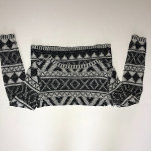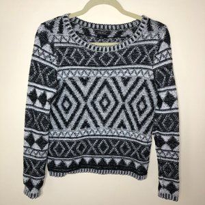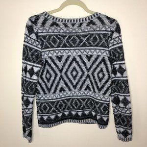 Lucky Brand Jacquard Black & White Geo Print Long Sleeve Sweater Y2K Classic