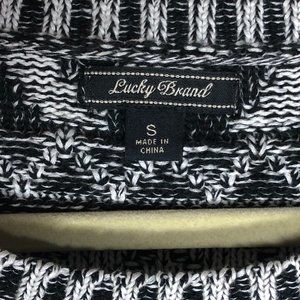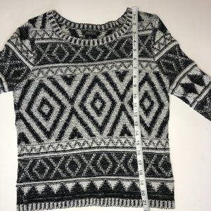 Women's Lucky Brand Jacquard Black & White Geo Print Cotton Long Sleeve Sweater - SZ SM