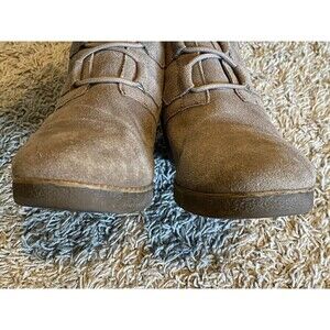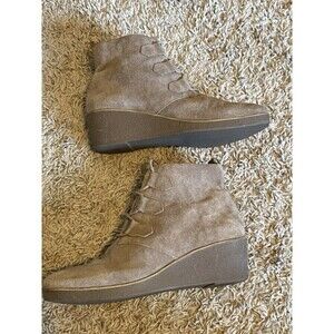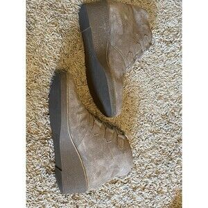 Lucky Brand Jaemma Lace Up Wedge Ankle Boots Booties Tan Leather US Women's 9.5M