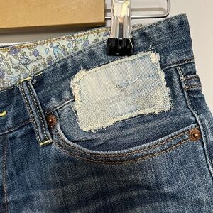 Lucky Brand Jagger Mended Denim Shorts Size 6 Patch Distressed Boho Y2K
