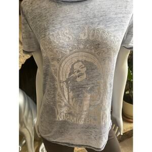 Lucky Brand Janis Joplin Burnout Gray Short Sleeve Shirt Women's Size M. Measurements: bust: 21, length: 25