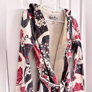 Lucky Brand Japanese Floral Belted Jacket With Hood - Cotton Size Medium