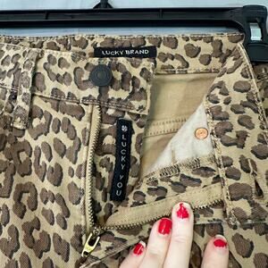 Lucky Brand Jeans 25 Leopard Print Brown High Rise Straight Bridgette Ankle