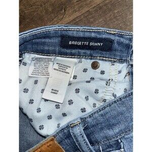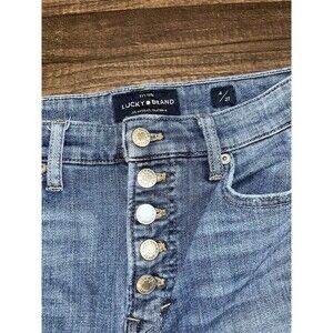 The Lucky Brand Jeans 4/27 Blue Bridgette High Rise Skinny Ankle Button Fly is a stylish and versatile pair of denim pants designed for women. With a high-rise waist and a skinny fit, these jeans offer both comfort and a flattering silhouette. Featuring a button fly closure and a 5-pocket design, they are perfect for everyday wear in any season. Made from a blend of cotton and spandex, these Lucky Brand jeans provide a good fit and stretch for added comfort. The solid blue color and medium wash make them a classic addition to any wardrobe, while the belt loops offer practicality.