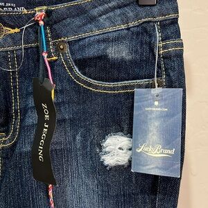 Brand new with tags. Girls size 14 lucky brand jeans. Style is Zoe jegging. Super comfy and soft and stretchy. Distressed. See pics for measurements.