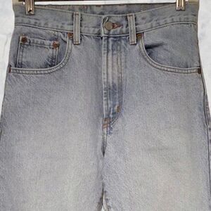 Lucky Brand denim jeans women's size 8/29. Zip front, single button closure, light blue wash. Contrast stitching in copper. Actual measurements: Waist 29, Rise 11-1/2, Inseam 30-1/2, Leg opening 7-1/2.