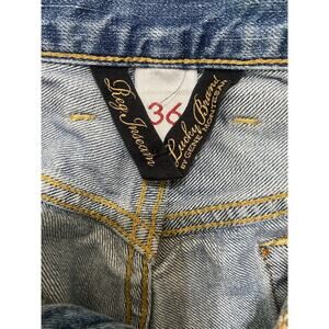 Lucky Brand Jeans Mens 36 x 30 Blue Bootleg Zip Fly Distressed