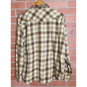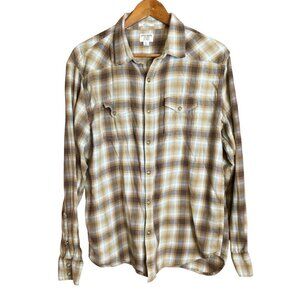 Lucky Brand Jeans Men's Western Snap Front Shirt Classic Fit Brown Plaid Size XL