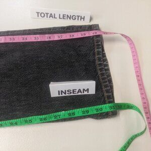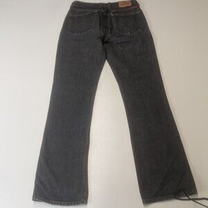 Mid-rise, standard 5-pocket style jeans, with zippered fly and belt loops. Dark wash, boot cut, and in excellent condition!