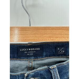 Lucky Brand Jeans Women Size 6 Mid Rise Ava Skinny Blue Distressed Raw Hem Denim