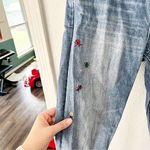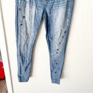 Lucky Brand Jeans Women's 4/27 Ava Mid Rise Skinny Ditsy Bug Embroidery