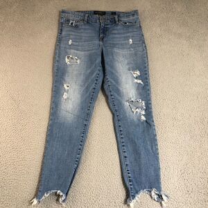 Lucky Brand Jeans Womens 8 Blue Skinny Distressed Thrashed Grunge Preppy Raw Hem