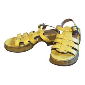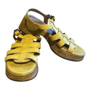 Lucky Brand women’s designer yellow leather strappy buckle clog style sandals. US size 7.5M/EU38.