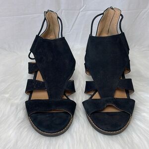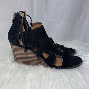 Lucky Brand Joellen Black Suede Wedge Heels Sz 8.5