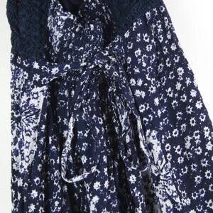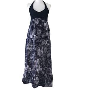 Lucky Brand John Robshaw Maxi Dress Crochet Halter Floral Size Small Blue Boho