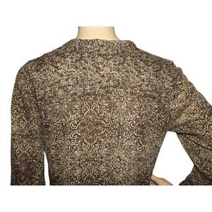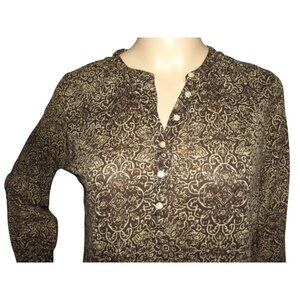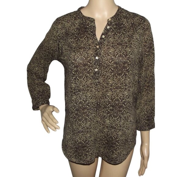 Lucky Brand John Robshaw Top Womens Sz Medium Brown floral print Henley pullover