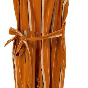 Lucky Brand Jumpsuit Catalina Orange Striped Wide Leg 100% Cotton Boho Bohemian Beach Belted Casual With Pockets